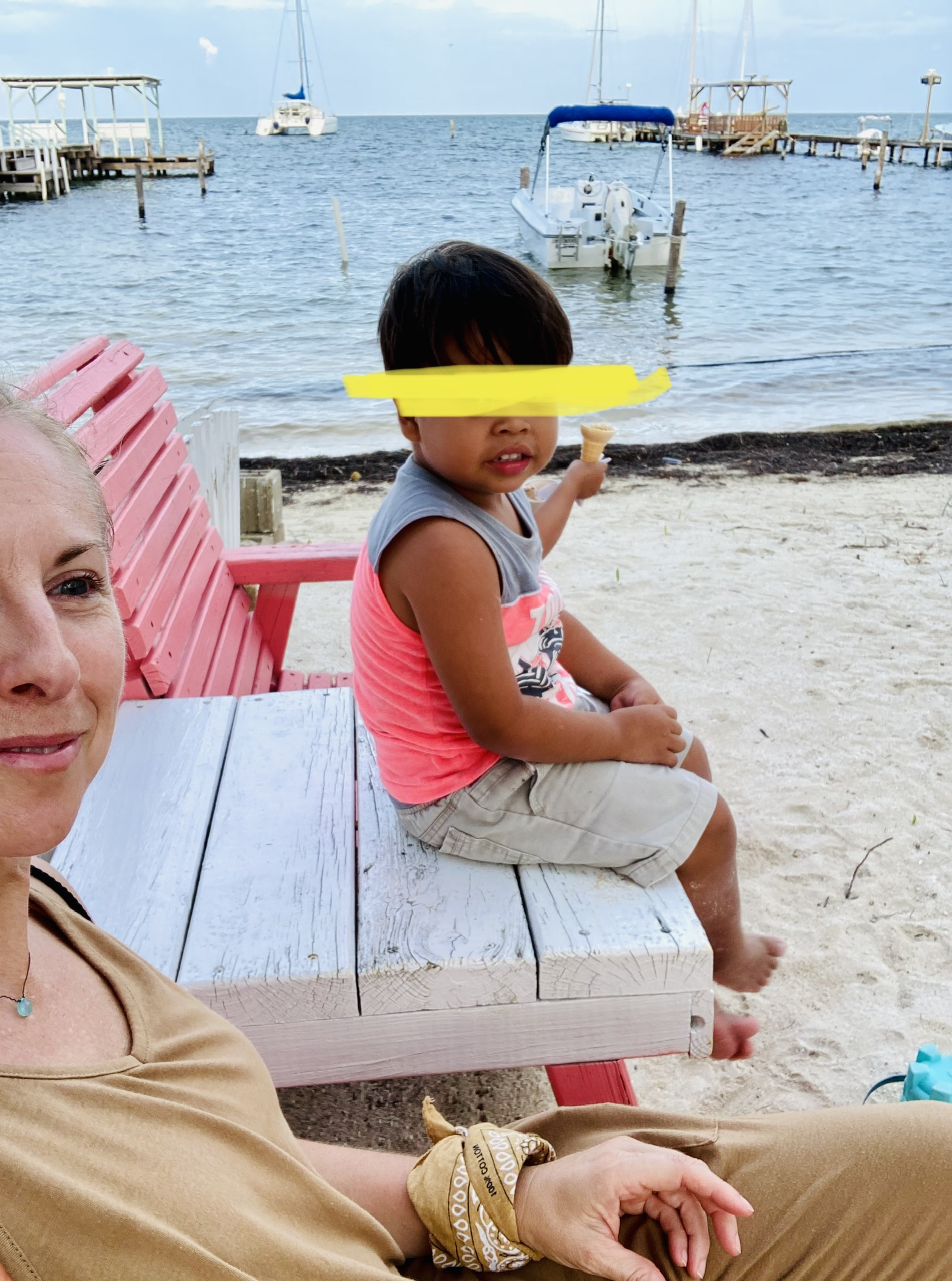 On this five-mile long, one-mile wide island, there are are approximately 10-12 grocery stores ranging from a tiny spot you’d stop at for a bag of chips, a mango, or a bottle of beer (which you open with the bottle opener at checkout and walk right out with); or, one of the larger main street shops with oat milk, gluten free pasta and a homemade ice cream counter. Sounds idyllic, right? Sit back and chug that beer you just opened at the smaller store… Because the truth is, this island is an absolute nightmare for a germaphobe or anyone with food allergies or a weakened immune system. Food is made out of homes, kitchens without air conditioning and sometimes without refrigeration, I suspect. There aren’t a lot of personal boundaries on this overpopulated island and people are so friendly, preferring to greet each other by shaking hands and hugging. Or handing you food or drinks to try, and in my case feeding me strange plants. Just last week I was even sitting by the ocean and inadvertently babysitting two children! You read that correctly. One I’ve met once before, the other a complete stranger, yet she sat not across from me with her ice cream cone but on the large pink wooden chair with me.