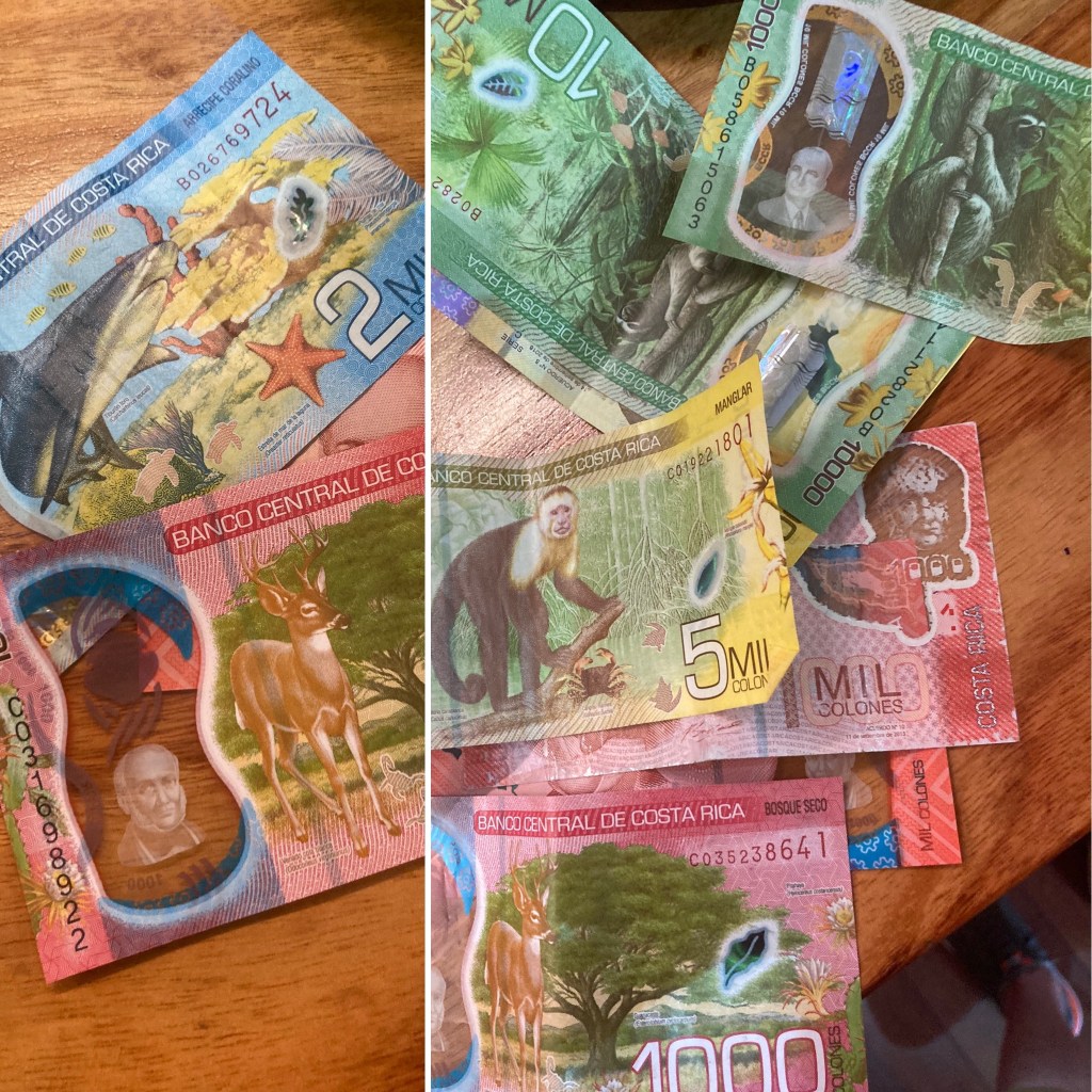 Guess what? Not everyone speaks English! We should all know this by now – even us Americans. When you’re dropped into a foreign country and a limited amount of humans speak your native language (in this case, English) it’s a real game-changer: a real “fuck-shit” moment, as Tina Fey said in the cute Netflix movie, Wine Country. You don’t realize that not only is it jarring to try and communicate with someone and you can’t find common words for you both to understand, but the signage on advertisements and street signs aren’t familiar. For example, in most large U.S. cities there is a street called Martin Luther King Jr., and there is Target™ and Walmart™ and McDonald’s™ and Starbucks™ everywhere. The point is, things look and read familiar. While I breezed through Cancun yesterday to fly down to San Jose, Costa Rica, there were a lot of U.S. businesses like The Home Depot™, Freightliner™, Walmart and the like. For the most part all signage is in a different language and they are all brands and logos my eyes don’t recognize. Combine that with the fact that we are one of the few countries that refused to adopt the metric system out of basically the entire world, so I’m doing math to figure out miles and currency conversion. It is fun though to figure out how much USD a sweet monkey on yellow paper money is worth versus a sloth on green paper money. Costa Rican currency – colones – is bright and has beautiful pictures of animals on the paper currency. It reminds me of when a group of us took a trip to Fiji ten years ago. The money is so pretty and I kept it as a souvenir but really just hoping to return one day and spend it.
