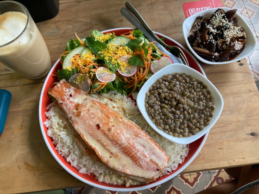 Anna knows how and where to book any type of transportation across every country we are visiting and the many she’s told me about from her previous adventures alone. I reluctantly got out of the Uber and with a mixture of English and Spanish, the hotel concierge tried to tell me where I should walk and what might be of interest. The instructions were muddy at best due to language barrier and the inability for my brain to relax into this imminent solo walkabout through San Jose. I mean, I had two options: get into another Uber and head straight back to the apartment too afraid to have a go at this alone and try to find another tour that was available; or, walk away from that hotel and try not to hit a dark alley or make a wrong turn. I chose option two and walked toward what I have to assume is the city center. Determined to find some cool architecture and a museum or two I first had to find coffee and breakfast. Being a coffee snob and in Costa Rica, finding unique cafes brewing the country’s finest homegrown beans was high on my list. After walking down the main street and window shopping – and then not window shopping, purchasing two shirts – I turned on my phone GPS to find a cafe I’d seen doing a random Google search, Cafe Rojo. It looked like my kind of place and it did not disappoint. In fact it exceeded my expectations and the staff were so nice. I actually had no idea that their food was Vietnamese fusion with a Costa Rican twist. I only saw that they had cappuccino and went for it. The food, coffee and service were out of this world, huge portions of food! I even had an impromptu Spanish lesson from a staff member named Dixon, while paying my tab. This lesson confirmed that I am useless at Spanish! It was fun anyway.