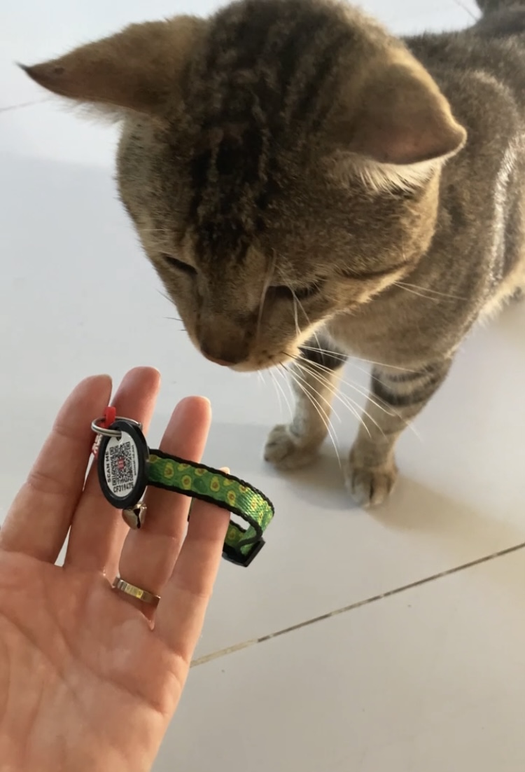 UPDATE: Less than 30 hours after I was back at Casa Vikingo, Mo showed up and we were reunited. As promised, I did buy his symbolic cat collar, to show that he belonged to me, in my heart.