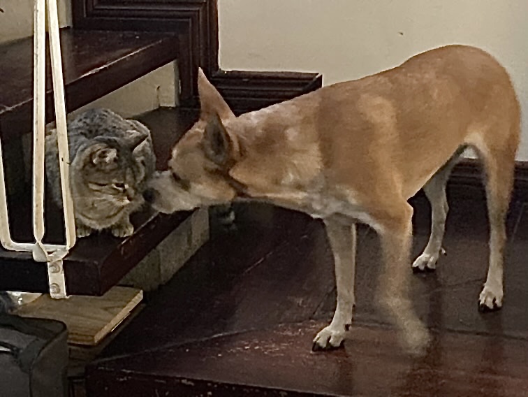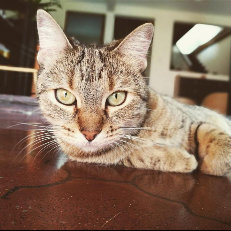 Without a doubt this was a little gray tiger tabby, same as Mo, except this one was exuding female energy. I didn’t even have to look at the back side to know there were no swinging balls on this one. She was a female feline through and through. She let me pet her a few times and my heart melted, because of her tiger stripes and cheetah swirls, characteristic fur in tabby cats, same as my little tigrillo. I can’t spell or pronounce her name but I know that it is a nickname based on the Spanish word for turmeric: cúrcuma. When her name was told to me it sort of sounded like “Curcules,” Hercules, with a “C.”