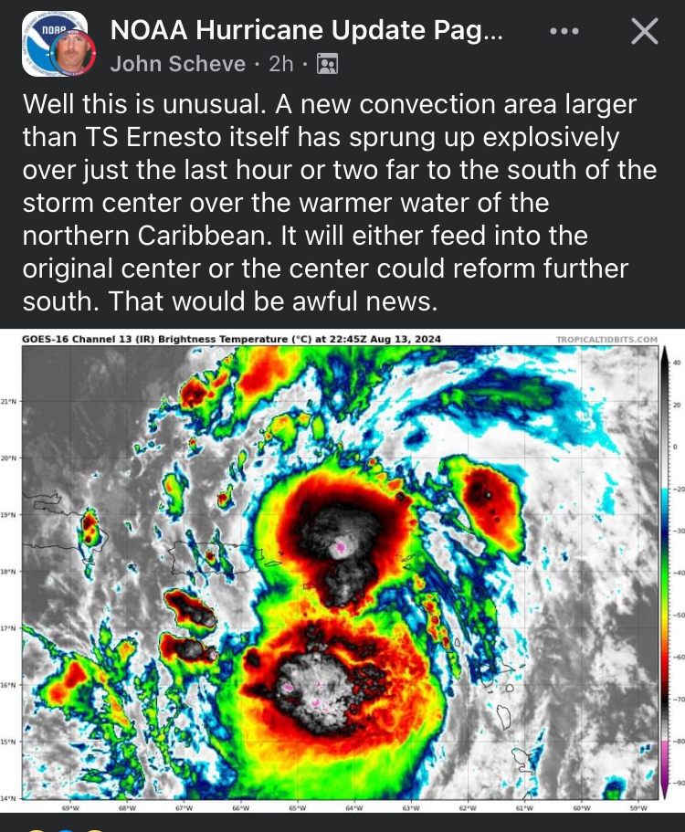 To put it simply, if you are looking at the photos of weather maps below, what you should see is an image that’s all blue. Where you see any other color of the rainbow except blue, it should make your butthole pucker, like mine has been for the last three days when I sensed Ernesto and I needed some distance from each other. And that is just what I’m going to give him, as I have had my fill of unnecessary grief from men. Ernesto can slap someone else around this week because next week I’ll arrive and will wrap my lips around a paper straw (because we care about the environment) in a sampling of rum-soaked cocktails in between salsa dancing and sightseeing.
